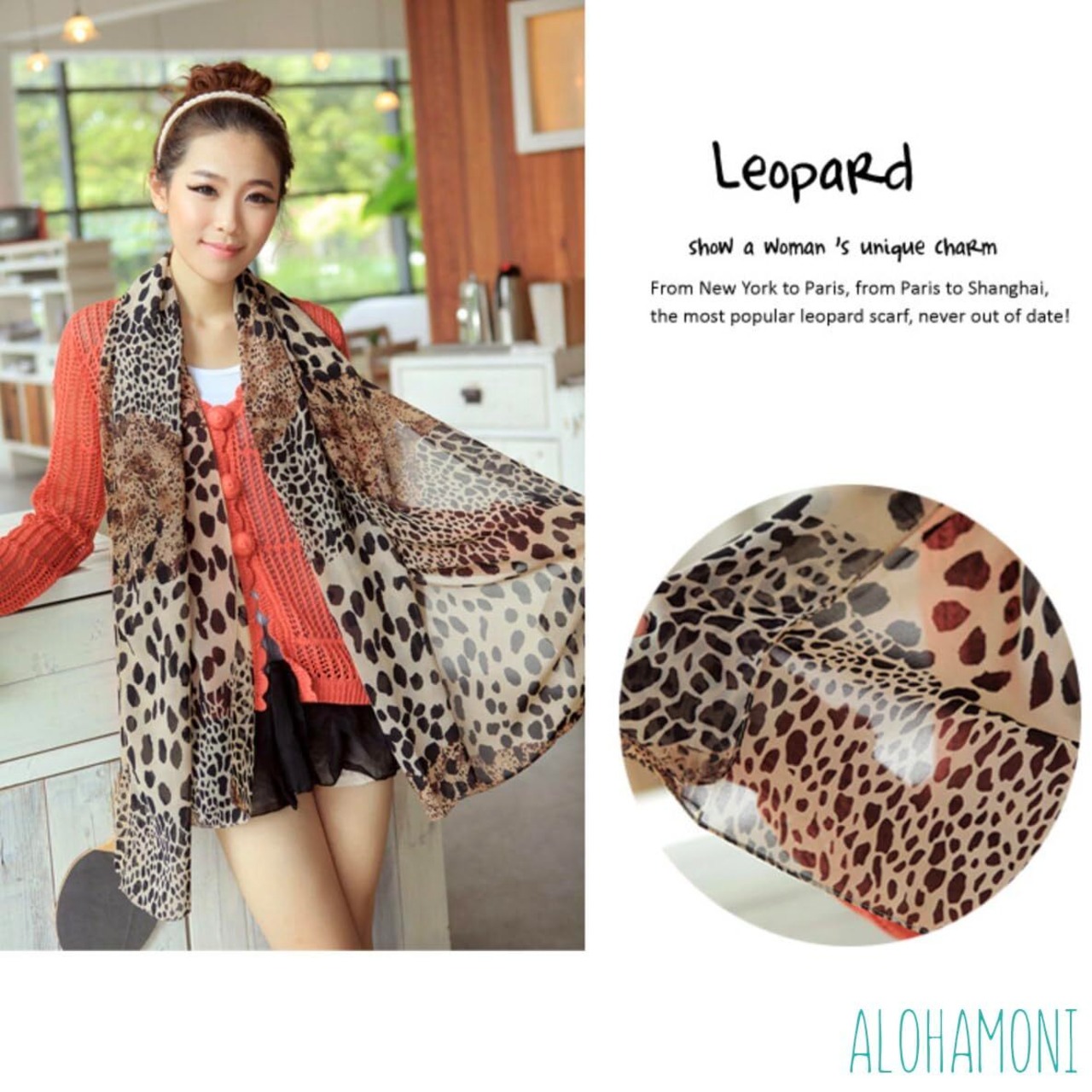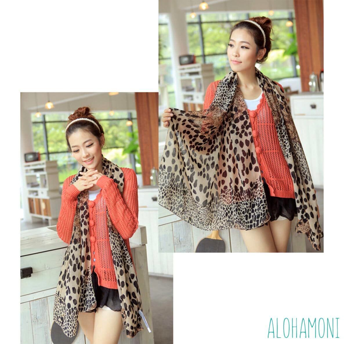 [ALOHAMONI] レオパード柄 アニマル柄 ストール マフラー ショール スカーフ バンダナ ヒョウ柄 首やバッグに ネッカチーフ ポケットチーフ ツイリー 装飾 シュシュ