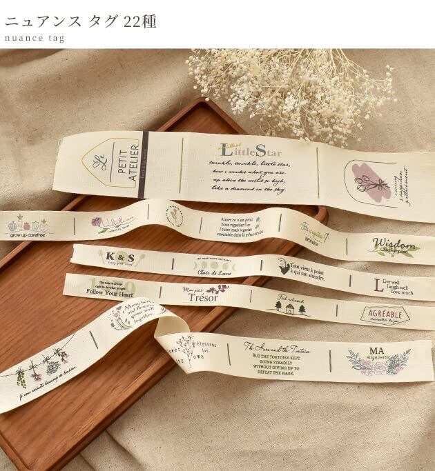 MYmama ニュアンス タグ 22種 15mm 20mm 25mm 50mm フラワー ハンドメイド用 コットン 綿 ロゴ おしゃれ ワッペン