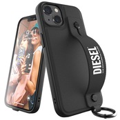 DIESEL iPhone13 ケース レザー ハンドストラップ スマホケース グリップ & スタンド付き FW21(ディーゼル ブランド ロゴ iPhone 13 ケース, ブラック)