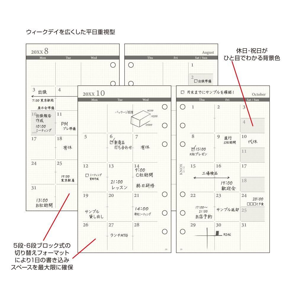 ノックス システム手帳 リフィル 2025年 バイブル マンスリー 月間ブロック平日ワイド 52110225 (2024年12月始まり)