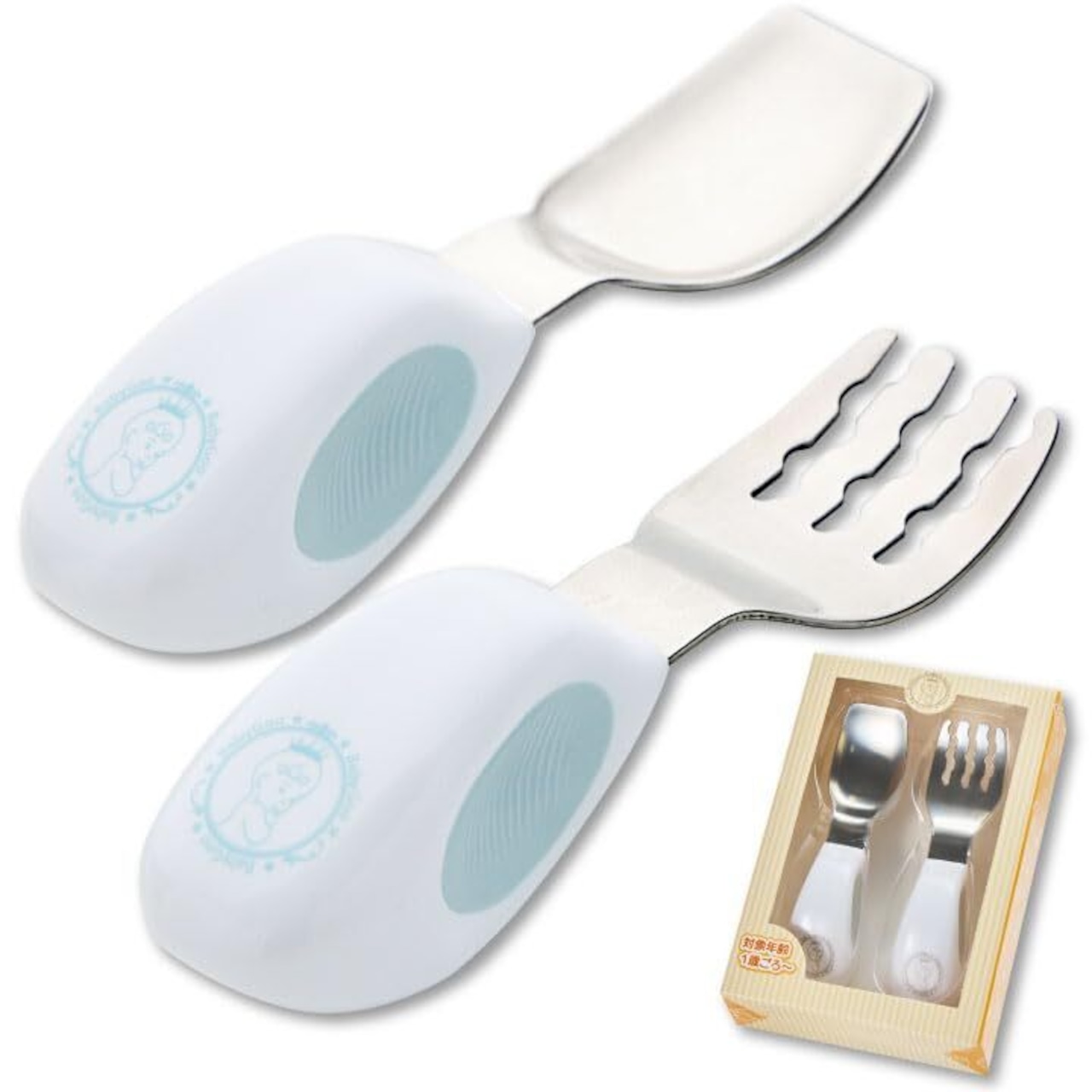 【食べやすいからお食事がどんどん楽しくなる】 フォーク先端は凸凹のデザインで麺類や果物類などが滑り落ちない設計になっています。 また、スプーン先端は平らになっているので、お皿の隅まですくいやすい設計になっています。 お子様に“できる喜び”を体験してもらいやすい独自デザインが完成しました。