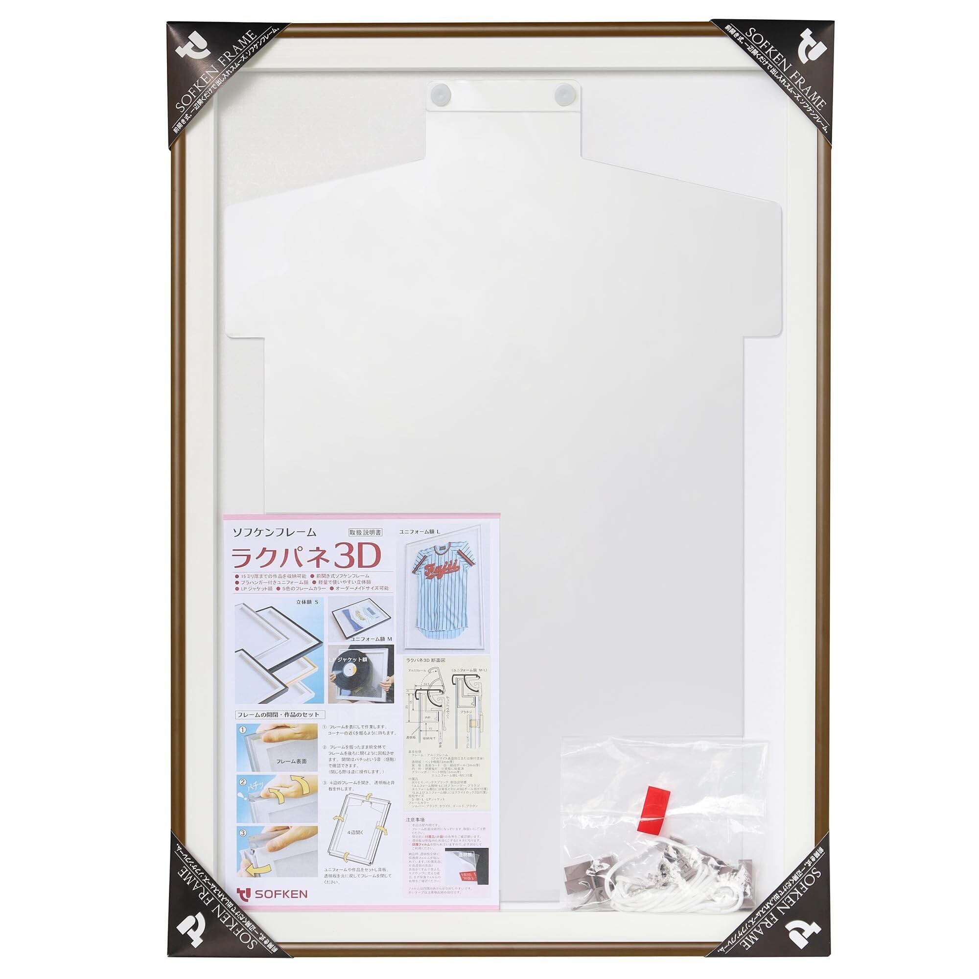 ソフケン アルミ額縁 ラクパネ3D ユニフォーム額 Mサイズ ブラウン 【軽量で作品セットが簡単、思い出のユニフォームやオリジナルTシャツなどをディスプレイ、透明樹脂ハンガー付き】