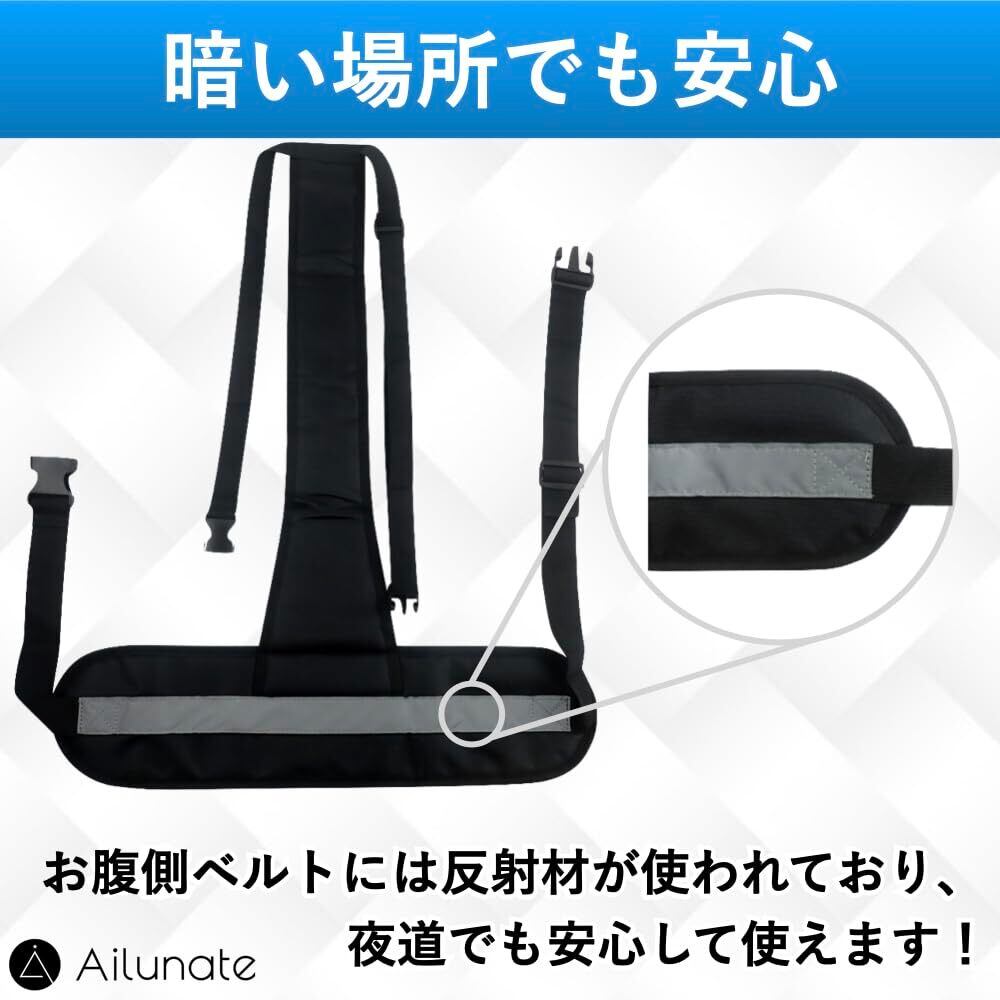 【暗い場所でも安心】お腹パッドの前側には反射材が使われており、夜道でも安心して使用できます。