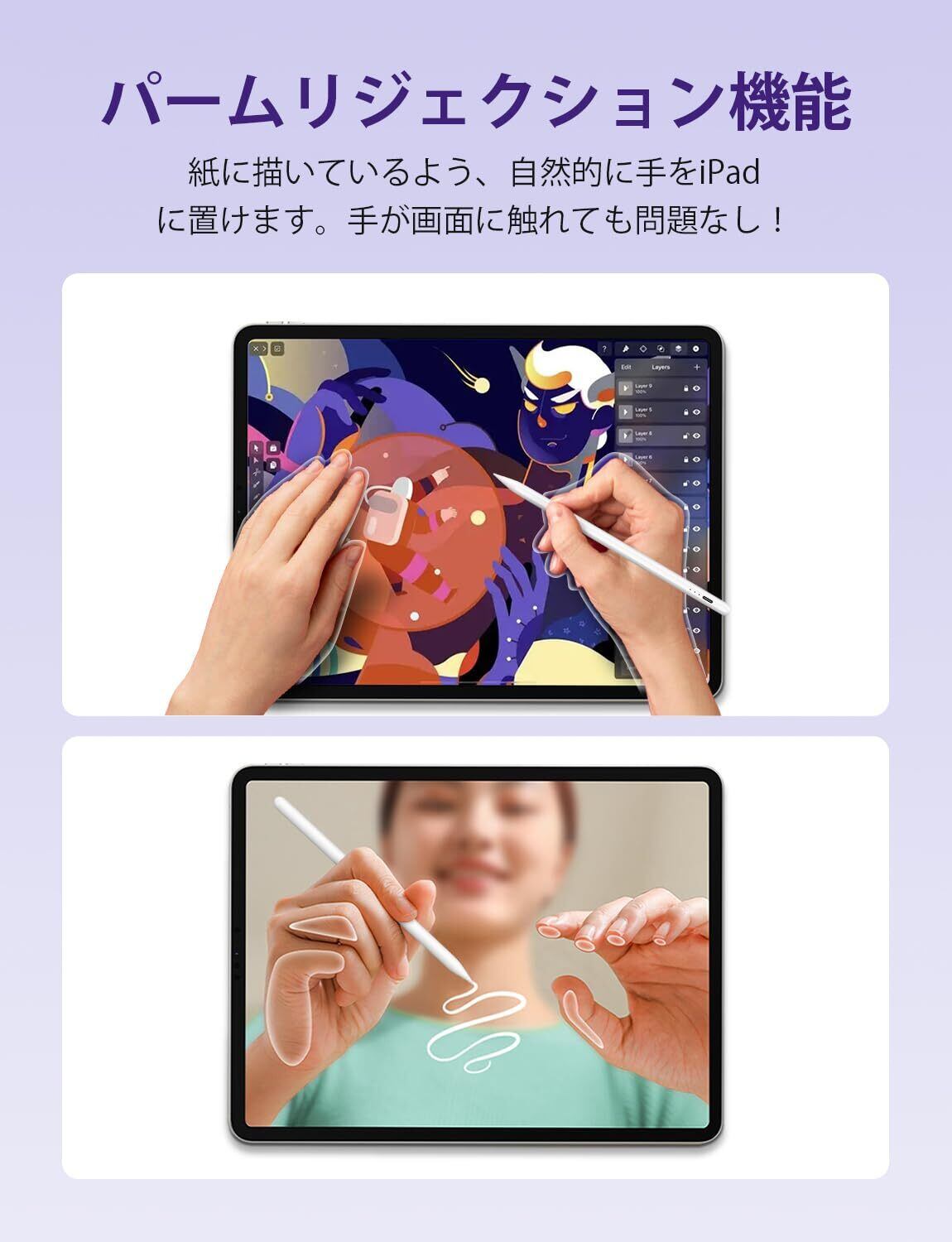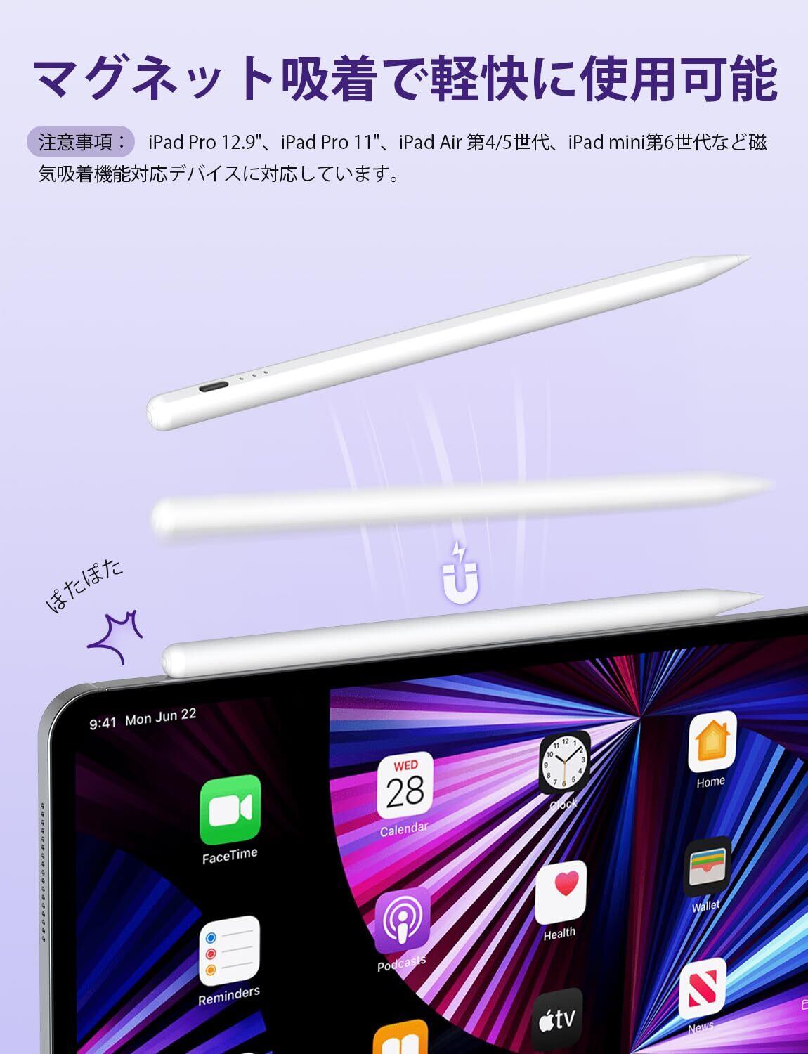 iPad ペン【13分超急速充電 バッテリー残量表示】MEKO iPad ペンシル iPad専用 タッチペン 傾き検知 磁気吸着 パームリジェクション機能 スタイラスペン Type-C充電式 超高精度 途切れなし iPad Pro M4/iPad Air M2/iPad/iPad Air/iPad mini/iPad Pro 2018年以降iPadに対応 ペン先3枚付き ホワイト