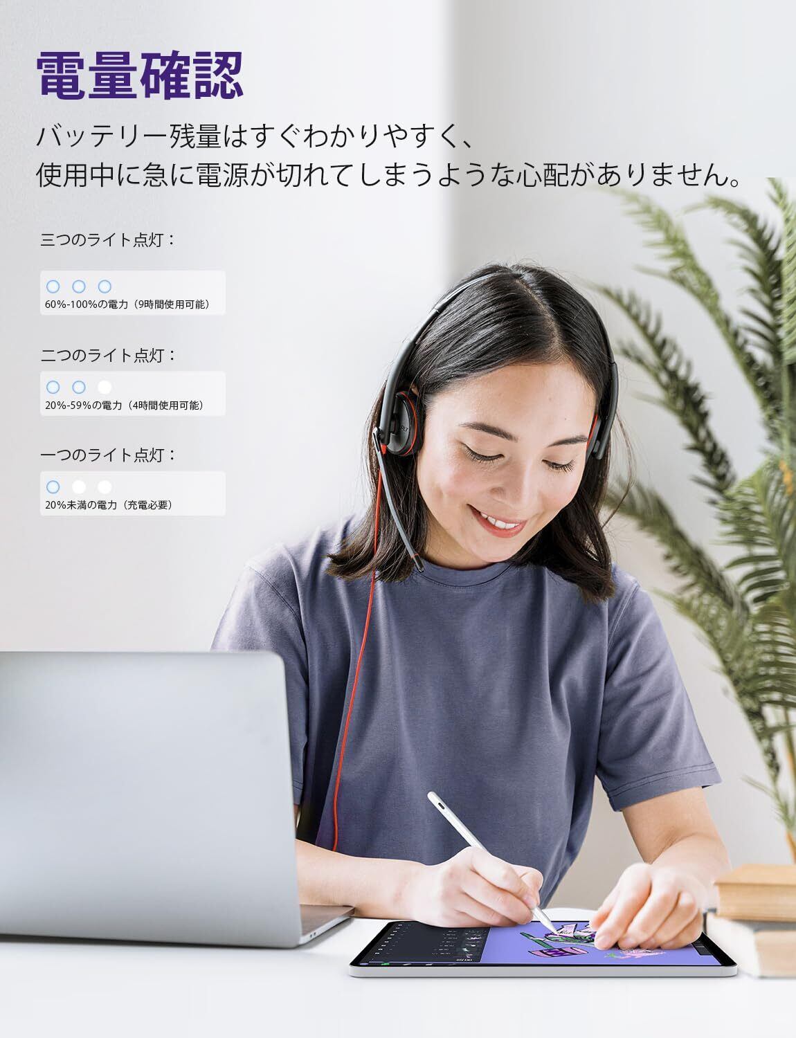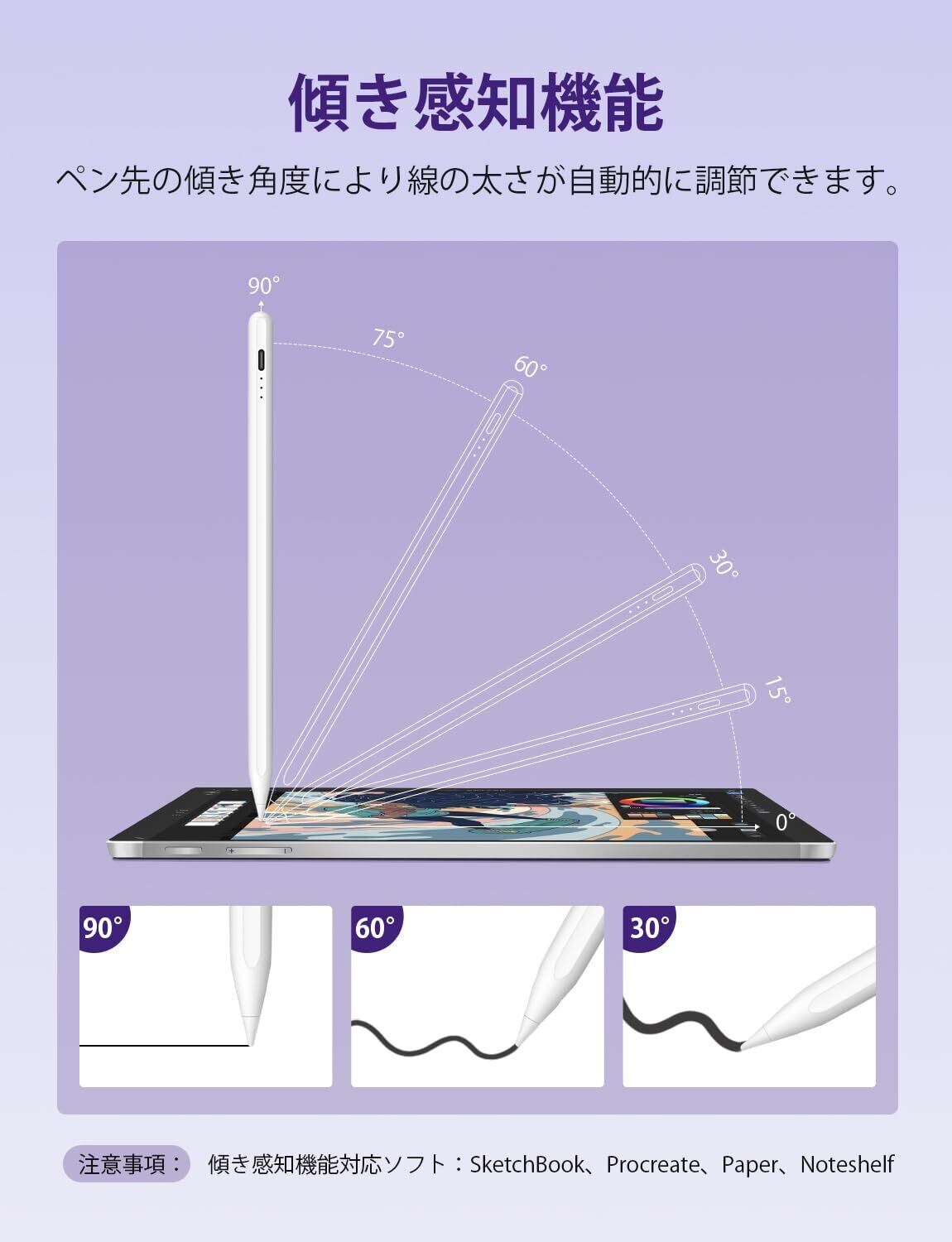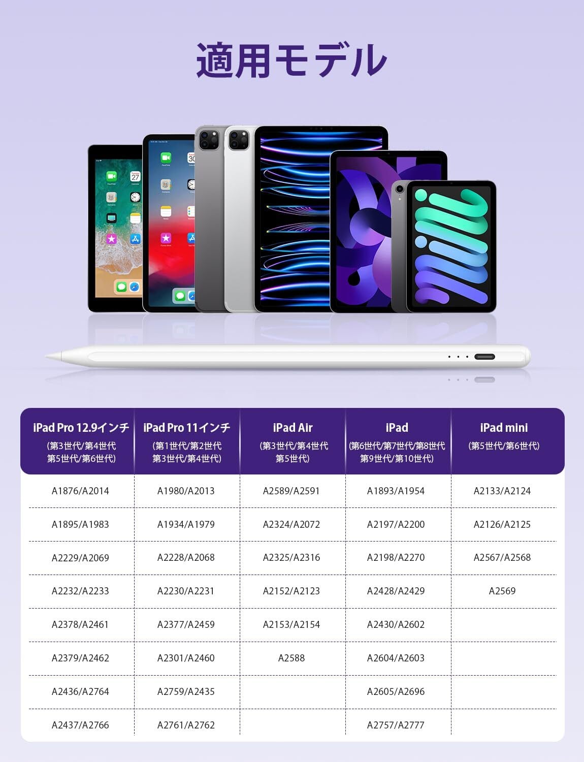 【2018年以降のiPad用に設計&パッケージ内容】2018年以降のすべてのiPad向けに設計されており、Apple Pencil対応アプリに瞬時にアクセス可能。対応機種:iPad Pro 11/13インチ (M4)、iPad Air 11/13インチ (M2)、iPad (第6/7/8/9/10世代)、iPad Pro 12インチ (第3/4/5/6世代) 、 iPad Pro 11インチ、iPad Air (第3/4/5世代) 、iPad mini (第5/6世代)。パッケージ内容:1*iPad ペンシル、1*Type-C充電ケーブル、3*交換用ペン先。iPadが以前にApple Pencilに接続されていた場合は、このiPad ペンシルを使用する前に、元のApple PencilのBluetooth接続を切断してください:設定> Bluetooth> Apple Pencil> Tap "I">このデバイスを忘れてください。