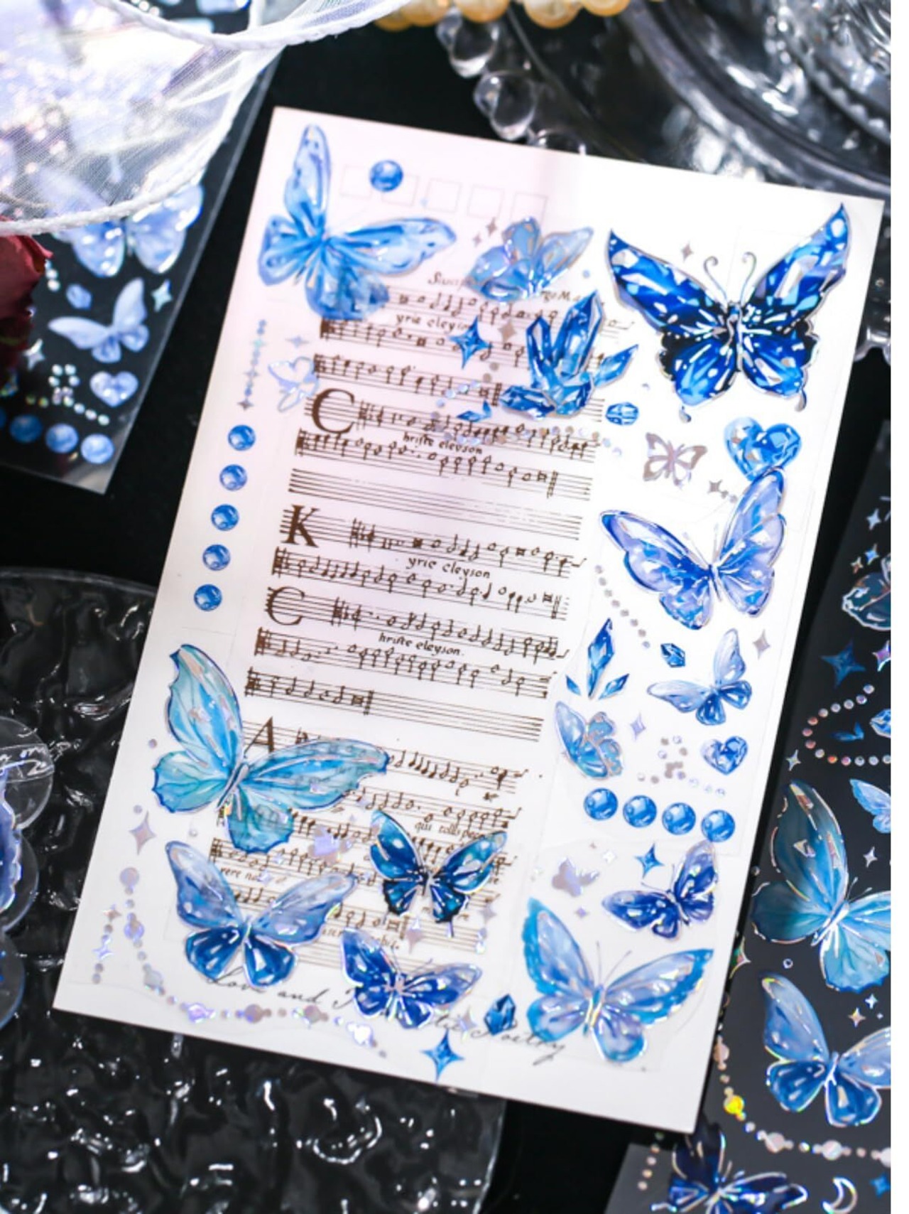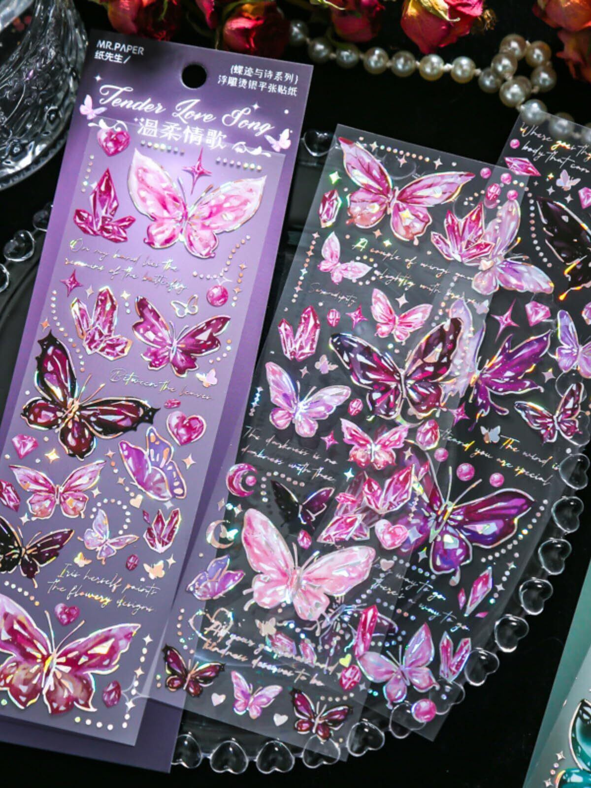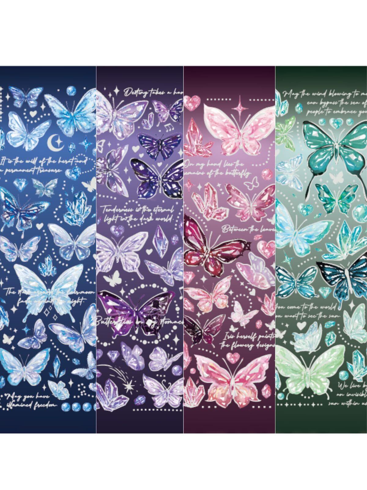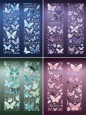 豊富なパターン:4つのテーマ、各テーマごとに3枚の蝶 ステッカー(3種類*1枚)の合計12枚のステッカーがあります。 ダイヤモンドテクスチャーの蝶のステッカー、絶妙でゴージャス、豊富なパターン、3枚のシートは繰り返されません。