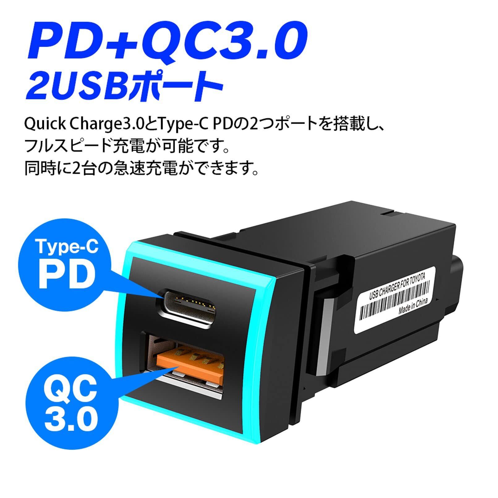 ◆トヨタ車対応のUSB QC3.0 + Type-C PD 2ポートカーチャジャー