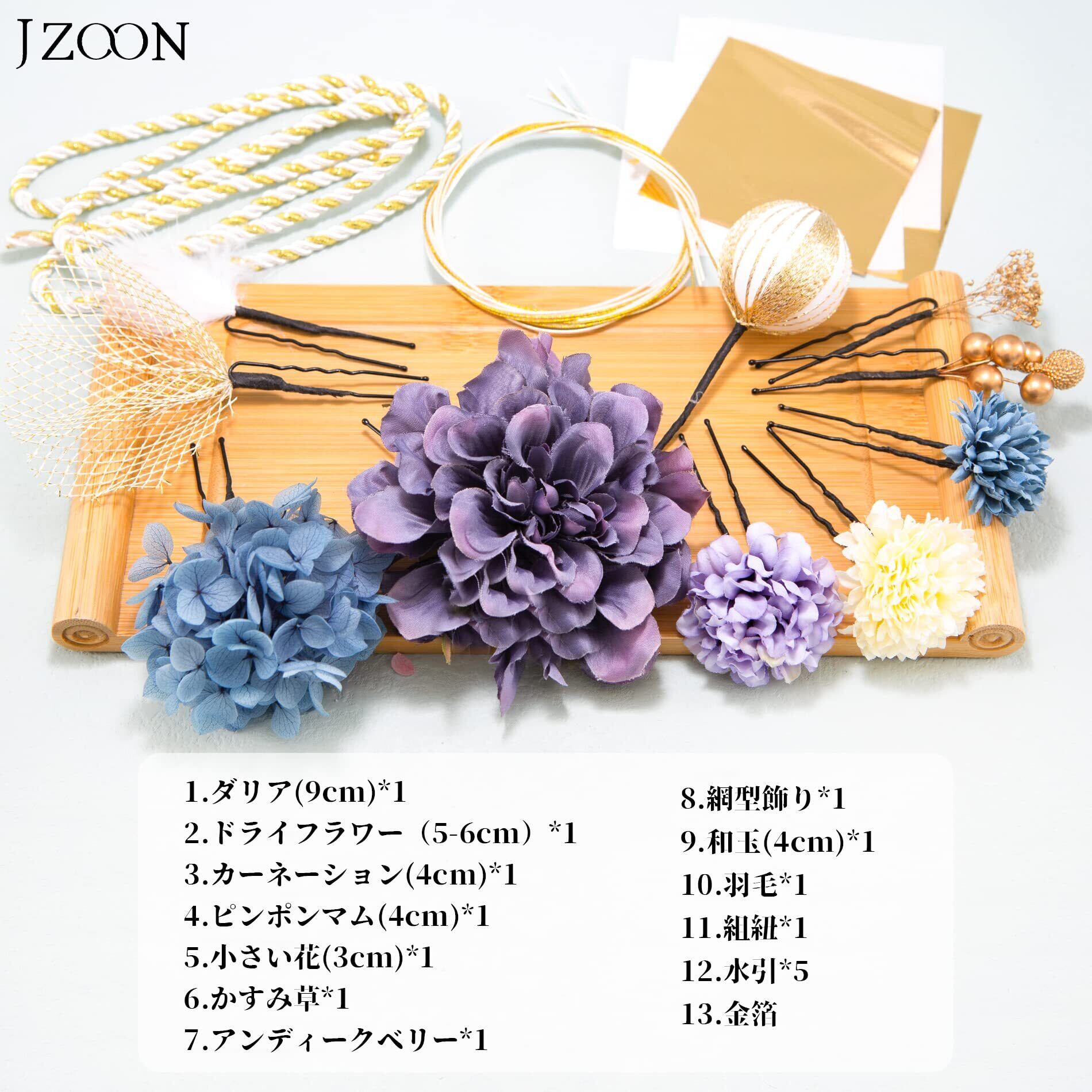 [JZOON] 髪飾り 成人式 髪飾り 8色 ドライフラワー 造花飾り 水引 紐 ダリア ヘアーアクセサリー 和玉 かすみ草 金箔 人気 和服 着物 振袖 袴 花 浴衣 成人式 七五三 結納 卒業式 入学式 結婚式 発表会 (パープル)
