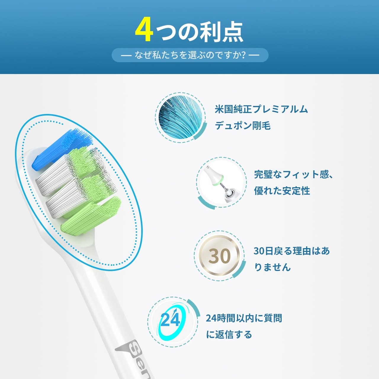 完全な互換性:Senyum歯ブラシ 替えブラシ特別に設計されており、フィリップスソニッケアー 替えブラシハンドルと完全に互換性があります。(すべてのスナップオンシステム)ご注意:ブラシヘッドのサイズは20mm*11mmです。お手持ちの歯ブラシが適切かどうかわからない場合は、製品説明ページに適切なモデルがすべて掲載されていますので、そちらをご参照ください。