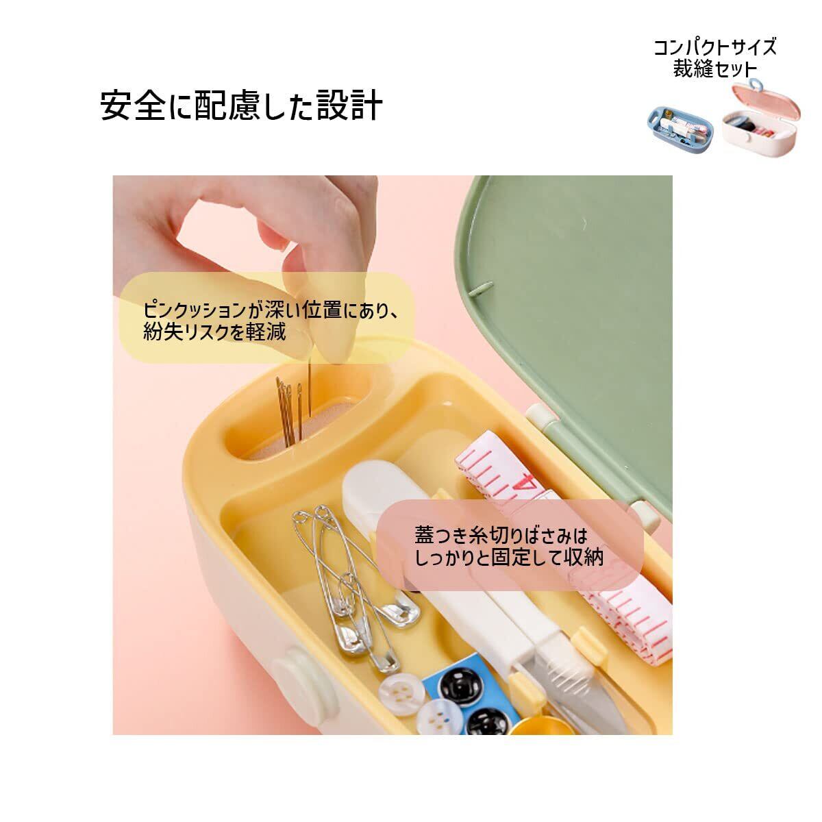 【コンパクトサイズ裁縫セット】 高さ5.8㎝×横15㎝×奥行9.3㎝のコンパクトさの可愛い収納箱に収められた機能的な裁縫セット。可愛いだけでなく、使いやすさや便利を併せ持つ優れもの。老若男女問わず、贈り物としても最適です。