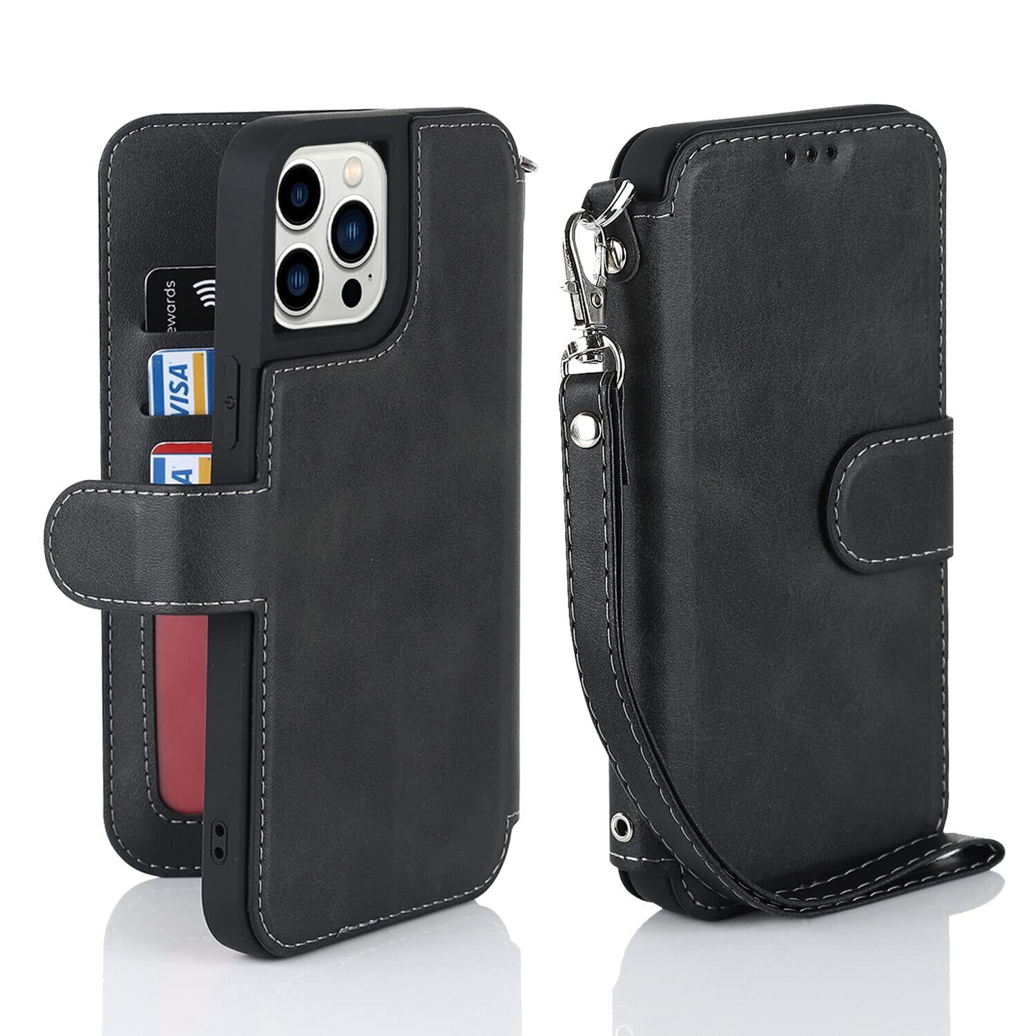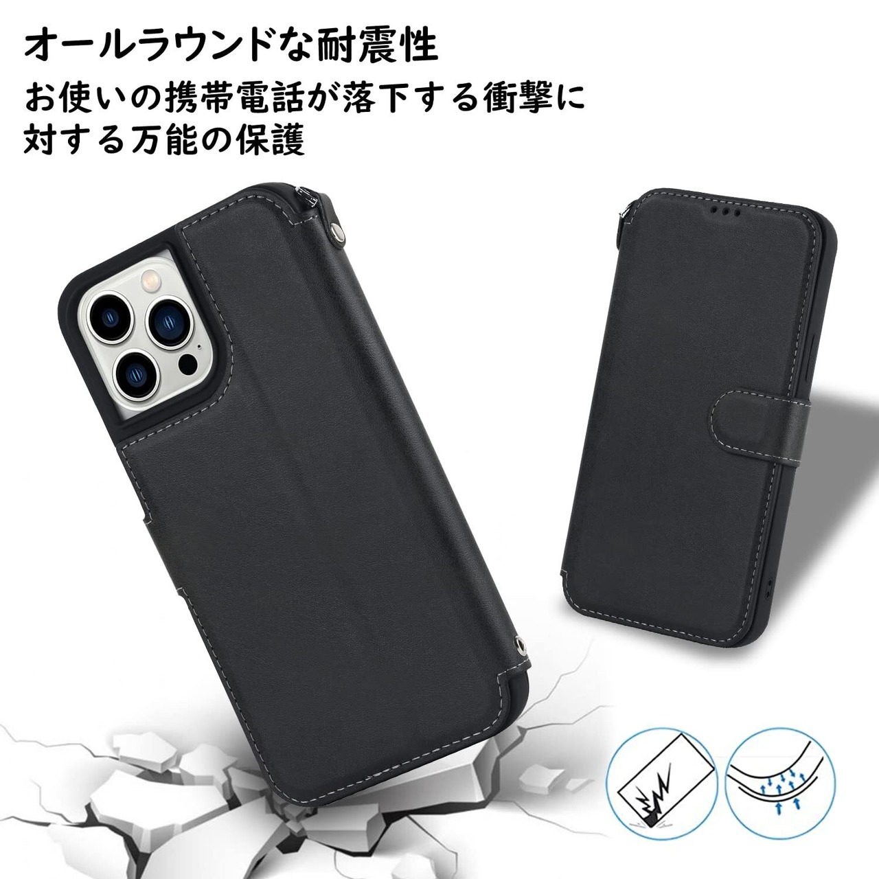Havaya iPhone13ProMaxケース iphone 13 pro max ケース スマホケース 米軍MIL規格 軽薄 手帳型 ストラップ 耐衝撃 レンズ保護 (アイフォン13プロマックス/あいふぉん13ProMax/いphone13ProMax/アイホン13プロマックス 6.7インチ対応)-ブラック