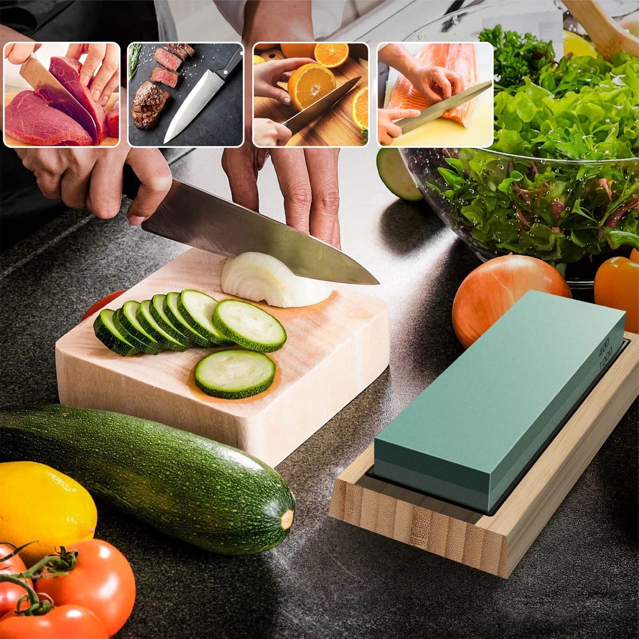 【使い勝手良好】5分から10分ほど、水に浸してから使用するので最適な、砥石面を平らになるまで前後に擦って修正します、斜め溝部が当たるように擦ります、平らになるまで擦ります、初心者でも使いやすい
