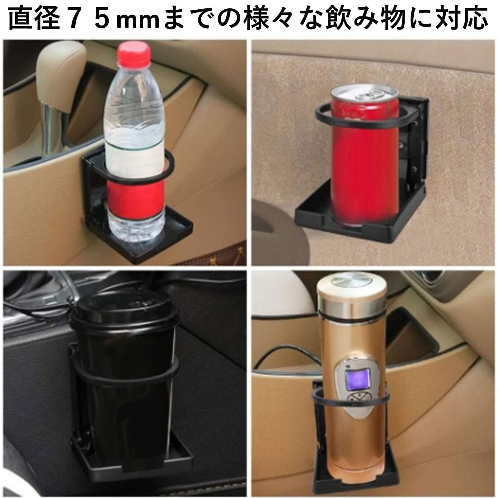 heizi ドリンクホルダー 車 折りたたみ 2個 セット ネジ付き 折り畳み カップホルダー 後部座席 船 ボート トラック (ブラック)