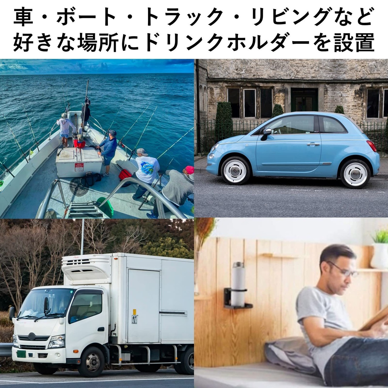 【幅広い用途】カップホルダーは平らな垂直面に取り付けられます。バン、トラック、ボート、自動車、船舶、RVなどに多く使用されており、ソファの横の壁、ベッドの横、または自宅、車、スポーツセンターのどこにでも設置でき、通勤や旅行の日常生活での利便性が向上します。
