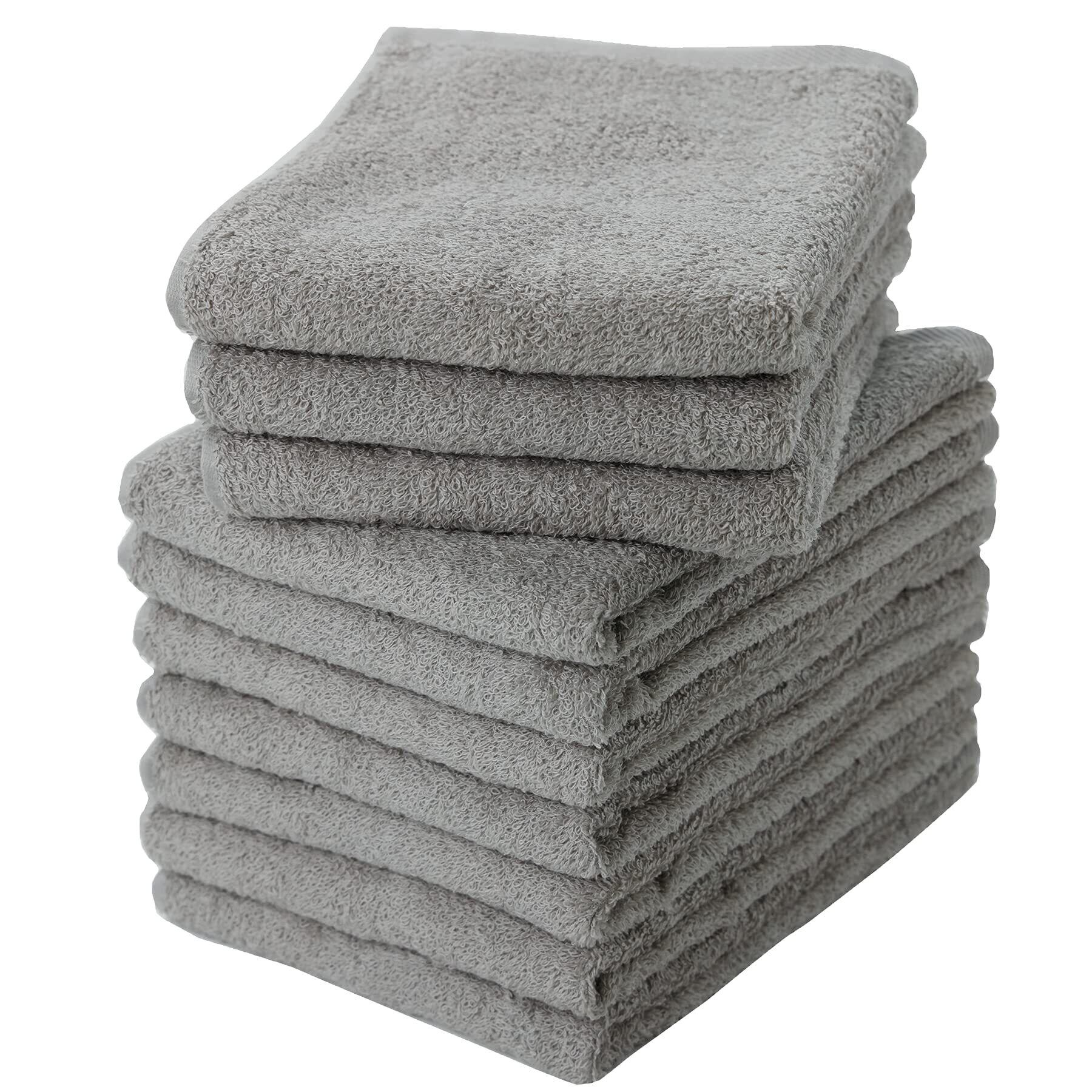 泉州タオル フェイスタオル 中厚手(320匁) 日本製 綿100% 吸水 業務用 同色10枚セット ライトグレー