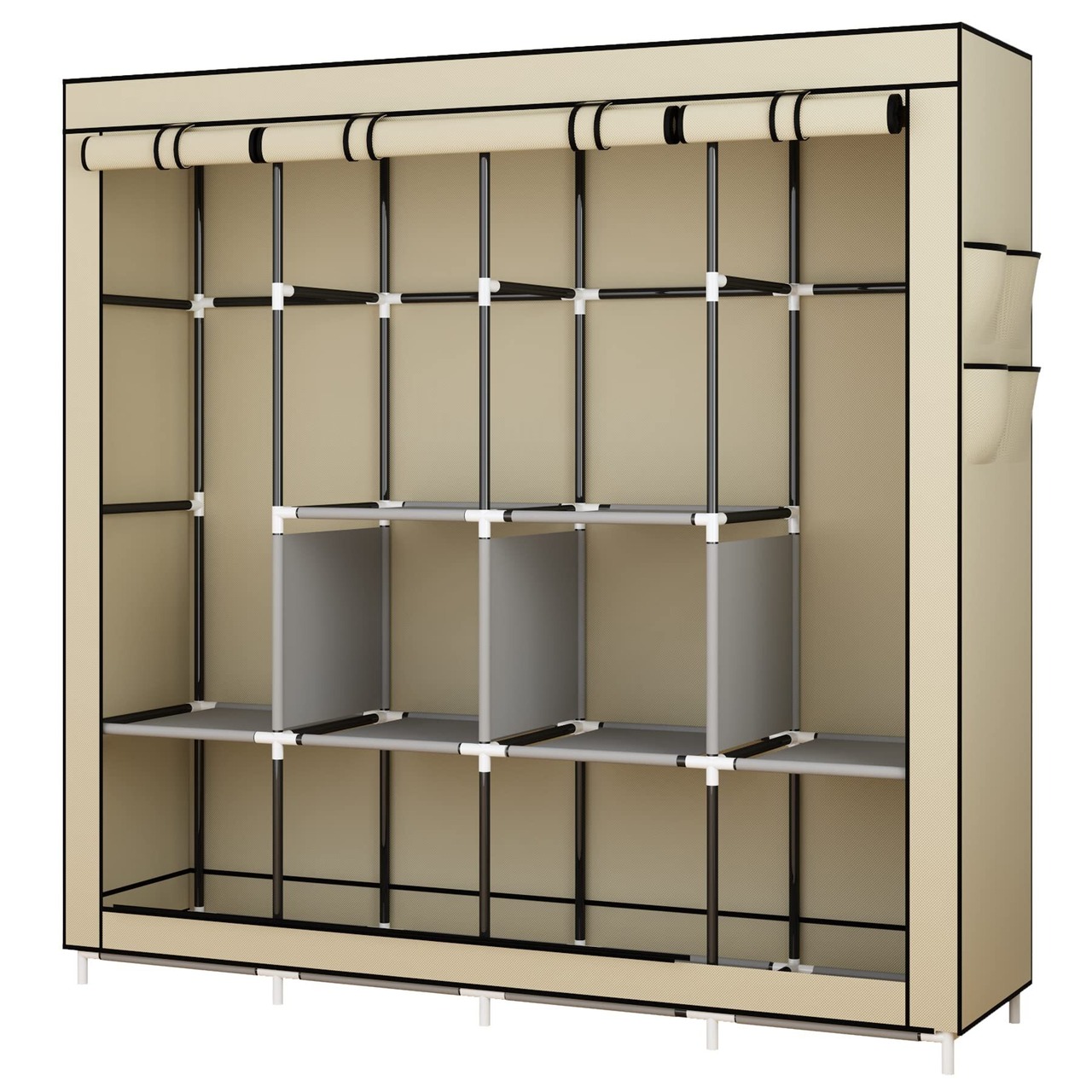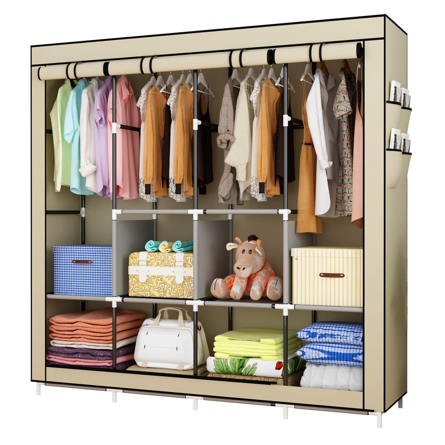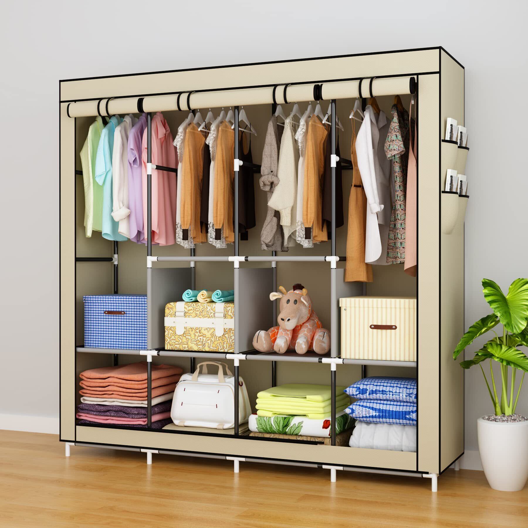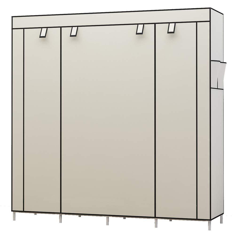 UDEAR 衣類 保管 キャビネット クローゼット 不織布 ワードローブ ポータブル 折りたたみ ダスト-プルーフ 家具 寝室 多目的 6 ストレージ シェルフ 4 ハンギング セクション 4 サイド ポケット 170*167*45 cm ベージュ