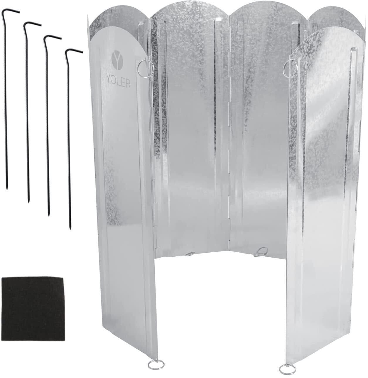 ヨーラー|YOLER ウインドスクリーン 大型 キャンプ 焚き火 リフレクター 陣幕 風よけ 亜鉛メッキ鋼板 8枚連結 折り畳み式 長さ120cm×高さ50cm 専用収納ケース アウトドア 燃料節約 風防 反射板