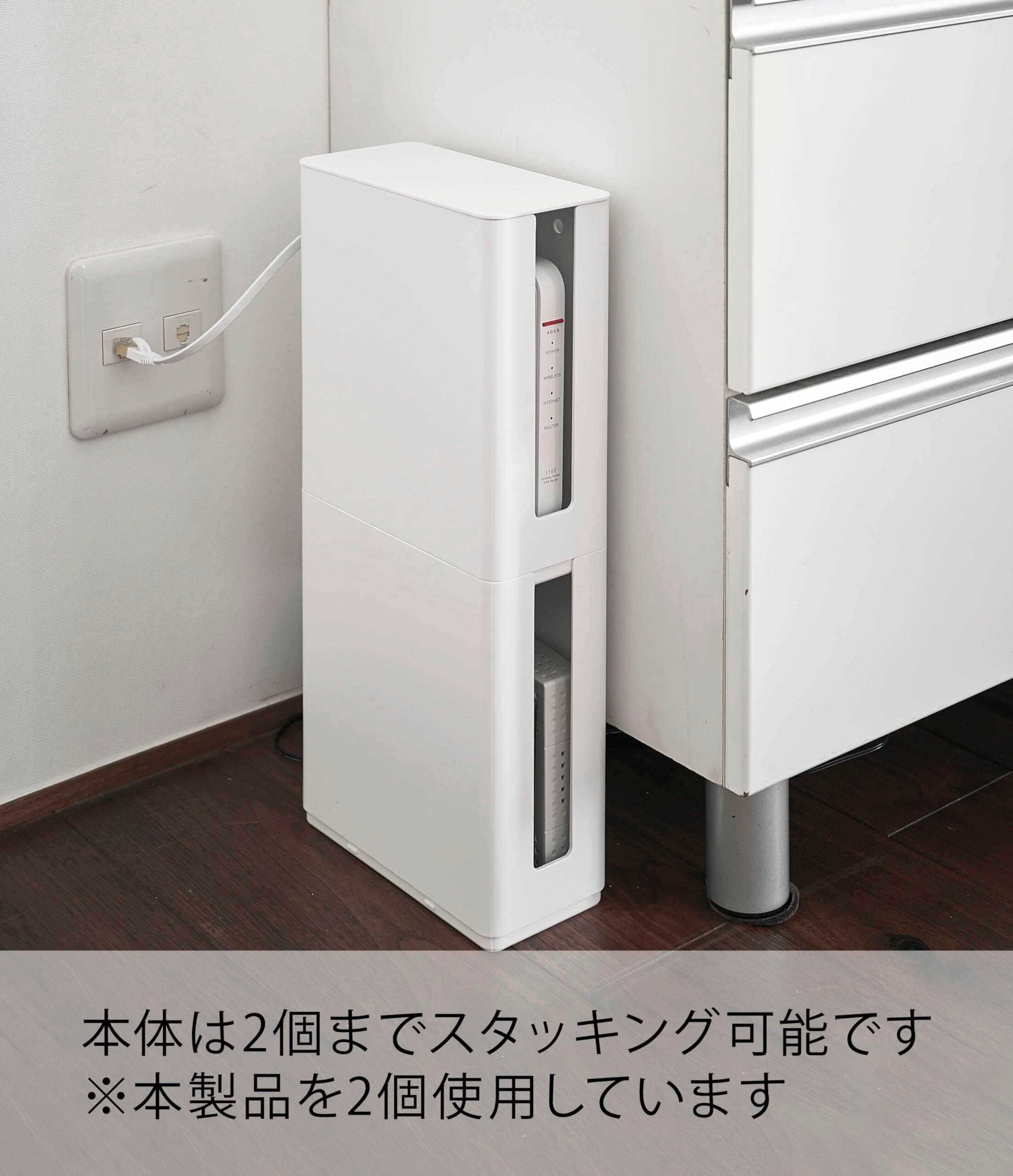 山崎実業(Yamazaki) 重ねられる スリム 蓋付き ルーター収納 ケース ホワイト 約W9.7XD20.2XH22.2cm スマート テレビ裏収納 スタッキング可 4913