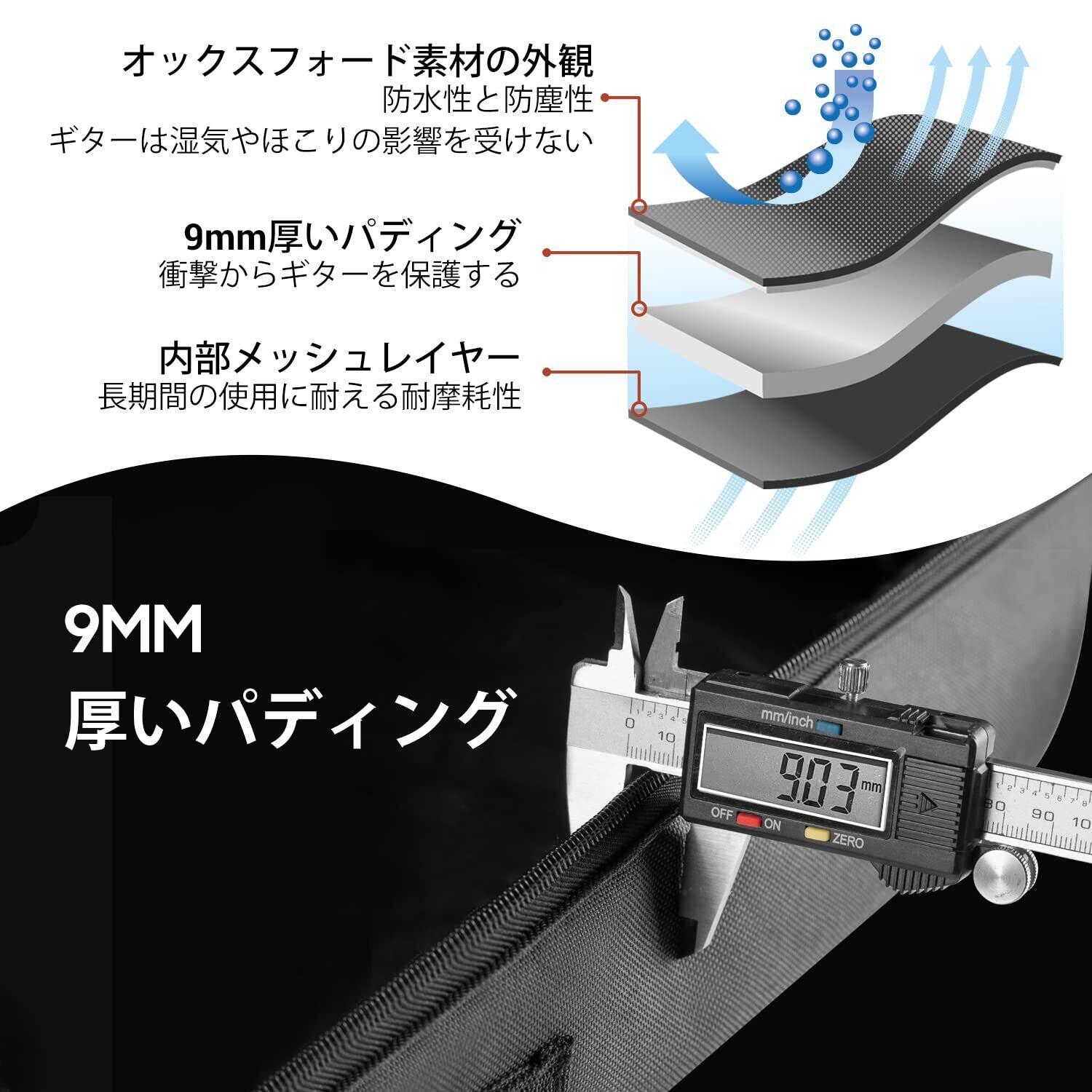 【厚いスポンジ9mm】厚いスポンジはギターの損傷を防ぐことができ、調節可能な厚いストラップは持ち運ぶ時もっと快適になります。