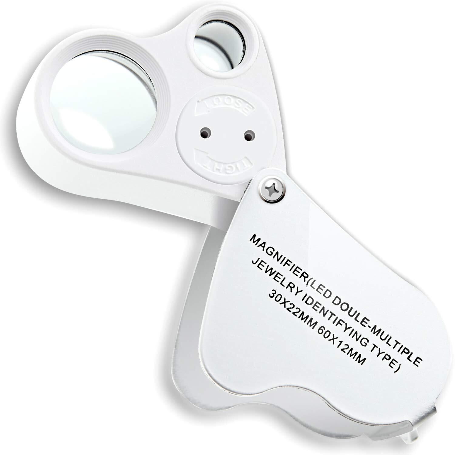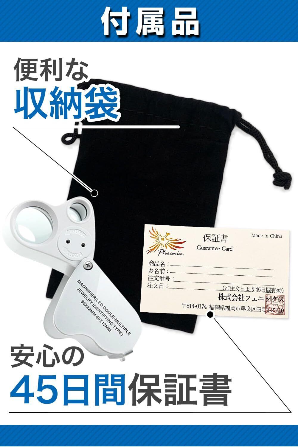 Phoenix 携帯ルーペ【30倍&60倍】2種類レンズ/コンパクト収納可能/LEDライト付き<長期45日間>拡大鏡 ルーペ シルバー