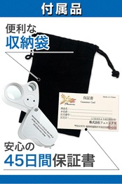 【サイズ】収納時:幅5.5cm 奥行2.8cm 小鏡レンズ直径1.2cm 大鏡レンズ直径2.2cm 【商品重量】27g(電池込み) 仕様電池:ボタン電池×3(電池品番:AG10)動作確認用電池が入っています。 【付属】45日間書付きパッケージ