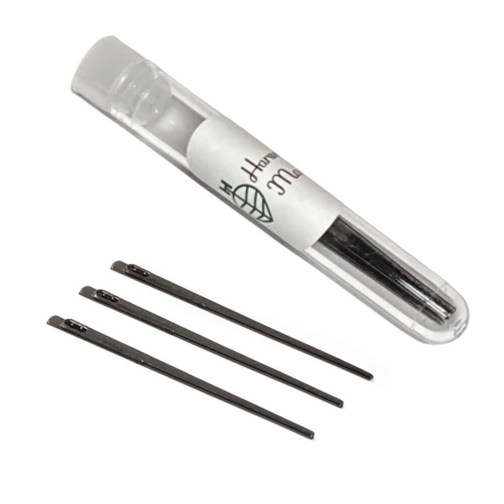 3本 1セット。穴に通すことなく挟むだけなので革ひもなど太い糸を縫うのに便利。