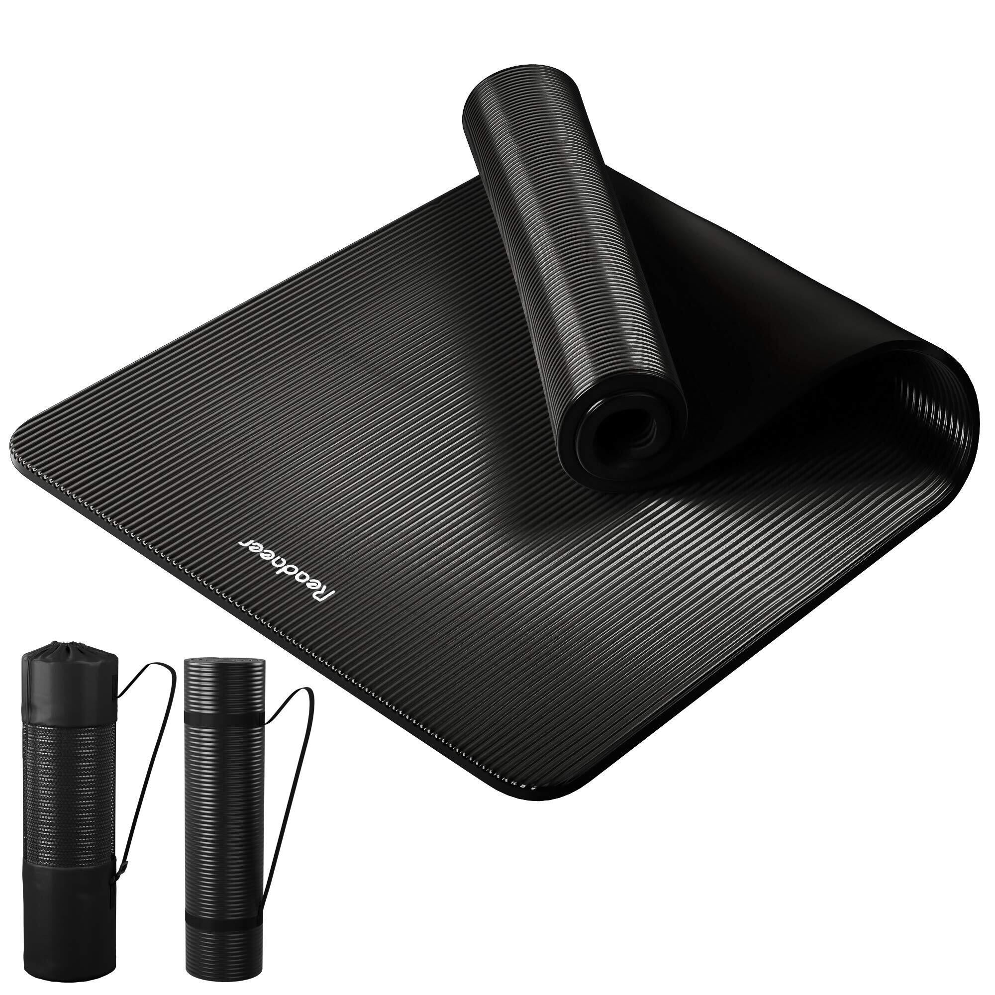 Reodoeer ヨガマット トレーニングマット エクササイズマット ゴムバンド 収納ケース付 厚さ10mm