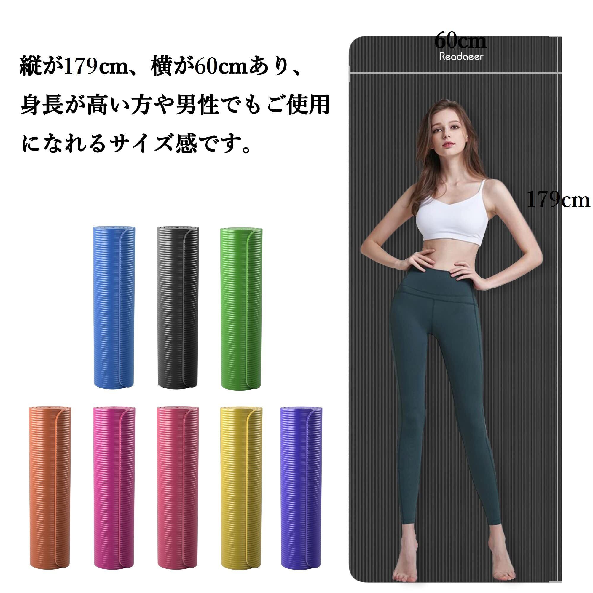 Reodoeer ヨガマット 厚め トレーニングマット エクササイズマット ストレッチマット 収納バンド 収納バッグ付き 厚さ10mm