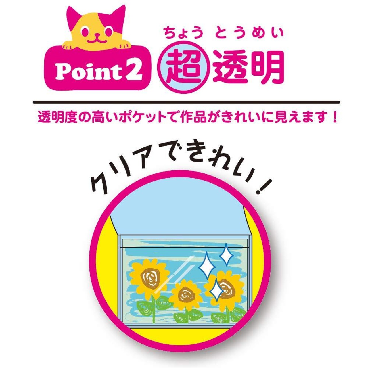 ●透明度の高いポケットで作品がきれいに見えます