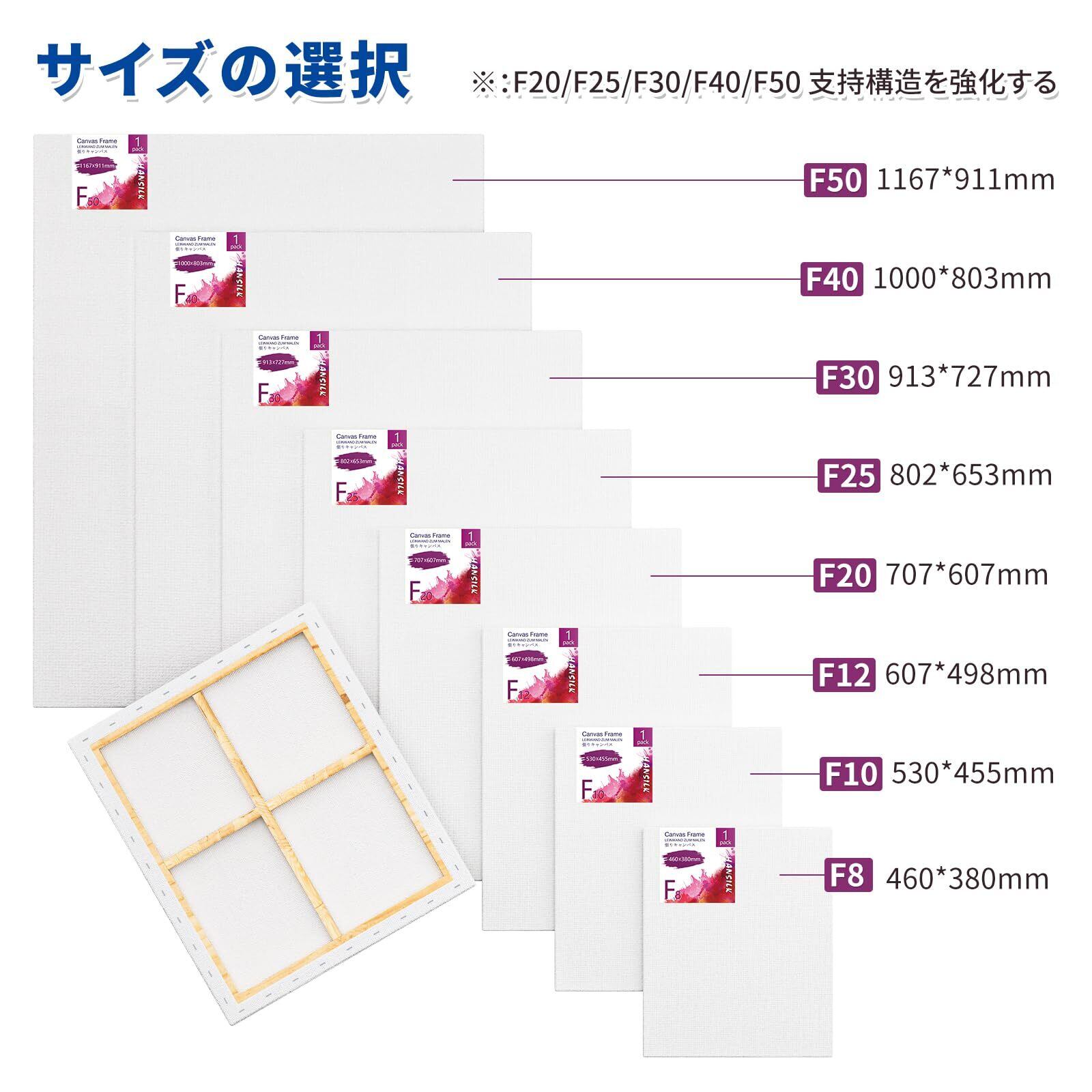 【仕様&独立梱包】F10 サイズ 455mmx530mm 1個/セット 【生地】 綿化繊混紡 【木枠】杉 【同梱物】キャンバス クサビ付き