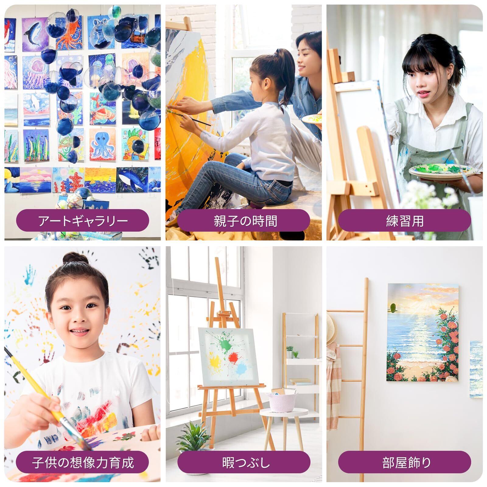 【サイズの選択と多用途】八つサイズ:F8、F10、F12、F20、F25、F30、F40、F50もお取り扱っております、サイズはお好みでお選びいただけます。キャンバスが適用されるシーンは非常に広く、部屋飾り、アートギャラリー、親子の交流、受験勉強などにもキャンバスを使って考えや感情を表現し、芸術的価値を高め、素晴らしい芸術体験をもたらすことができます。